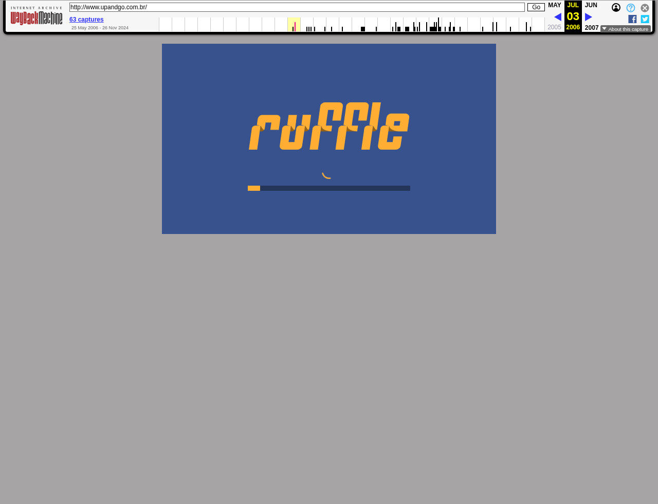 Este fragmento da Up and Go nos mostra um exemplo claro de como os sites corporativos eram pensados na internet dos anos 2000, quando o acesso ainda era lento e a prioridade era entregar a informação de forma rápida e leve. O design é centralizado, com fundo cinza e um bloco branco no meio, o que era comum para manter a organização visual sem exigir muito da conexão. Um destaque importante é o uso de um GIF animado que alterna o logo da empresa com a frase de efeito, recurso típico da época para chamar atenção sem precisar de vídeo ou plugins pesados. A linguagem usada é direta e o slogan em laranja mostra uma tentativa de se diferenciar com um toque mais humano. A comunicação é simples e centrada na proposta da empresa, sem enrolação. A preservação da página está muito boa, com todos os elementos visuais e textuais funcionando bem, incluindo o menu horizontal com links acessíveis. O fragmento transmite de forma fiel a estética e a experiência digital de um período onde o foco era ser funcional e confiável.